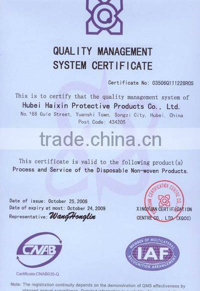 Hubei haixin protective products Co.,Ltd (HH) founded in 1994 has grown into a leading manufacturer & exporter specialized in all kinds of non woven & plastic disposable products for safety protective and healthcare.